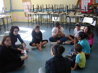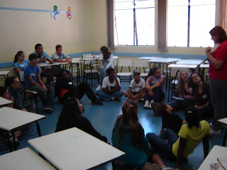 Através de dinâmicas, textos, filmes e debates procuramos trocar experiências entre o conhecimento e realidade dos alunos e os conhecimentos e realidades do NAJUPI.